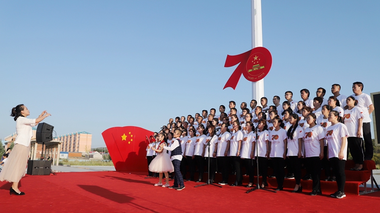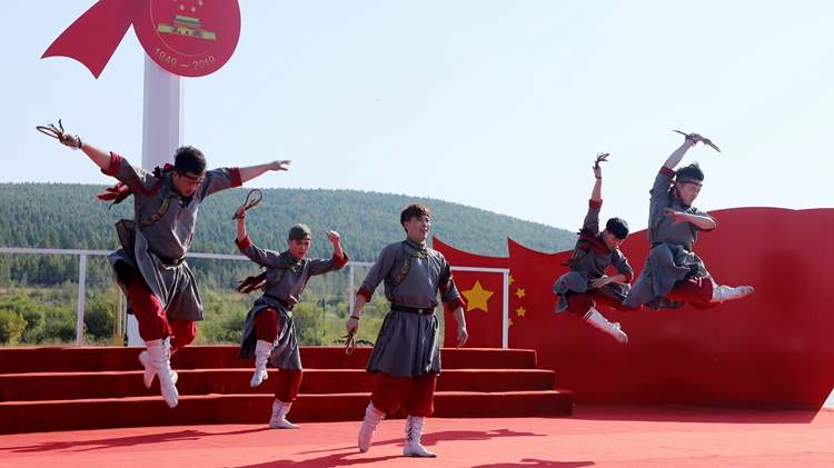9月4日,由內(nèi)蒙古大興安嶺庫(kù)都爾林業(yè)局、庫(kù)都爾鎮(zhèn)人民政府、庫(kù)都爾森林公安局聯(lián)合舉辦的“禮贊新中國(guó) 奮進(jìn)新時(shí)代”文藝匯演在庫(kù)都爾文化廣場(chǎng)上演?;顒?dòng)中,牙克石市烏蘭牧騎盛裝亮相,與當(dāng)?shù)芈毠と罕娡_(tái)演繹。他們載歌載舞,表演了歌伴舞、大合唱、小戲、樂(lè)器合奏、快板、詩(shī)朗誦等14個(gè)精彩節(jié)目,慶祝中華人民共和國(guó)成立70周年。(陳曉琳 攝)