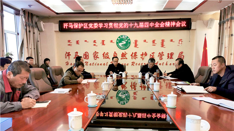 近日,汗馬自然保護區黨委召開學習貫徹黨的十九屆四中全會精神會議,理論教員詳細解讀了《中國共產黨第十九屆中央委員會第四次全體會議公報》,并對全會精神進行了深入淺出的闡述。(楊琨 黃山 攝)