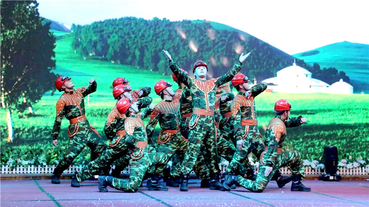 林業(yè)職工與大楊樹森林消防隊(duì)員表演的節(jié)目《火的洗禮》。(李志鳳 韓書鵬攝)