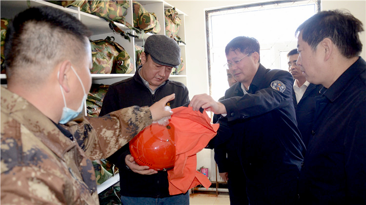在阿爾山林業(yè)局柴源林場(chǎng),閆宏光了解防滅火裝備和物資儲(chǔ)備情況,著重查看了頭盔、服裝等裝備,強(qiáng)調(diào)要切實(shí)做好人員安全防護(hù)工作。