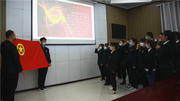 4月29日上午,內蒙古大興安嶺滿歸林業局召開“青春心向黨 建功新時代”五四表彰大會,對近兩年來在共青團工作中表現突出的4個先進集體和15名優秀個人進行了表彰獎勵。與會團員重溫了入團誓詞。(李全 攝)