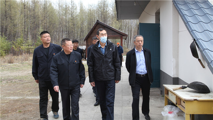 5月8日,國家森林草原防滅火督查組組長、國家林業和草原局駐內蒙古專員辦副專員王玉山深入克一河林業局檢查指導春防工作。(鄭云濤 攝)
