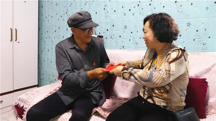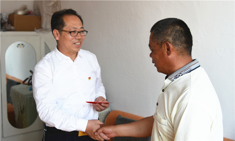 6月30日,根河林業局黨委開展“七一”慰問黨員活動,為老黨員、離退休黨員和困難黨員送去組織的關懷和節日的祝福。(張旭 攝)