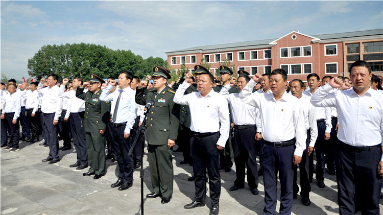 6月29日,為慶祝中國共產黨成立99周年,阿爾山林業局黨委、阿爾山林業局聯合阿爾山邊防部隊舉行慶祝中國共產黨成立99周年暨入黨宣誓儀式,新黨員進行入黨宣誓、老黨員重溫入黨誓詞,阿爾山林業局和阿爾山邊防部隊領導為新加入中國共產黨的同志佩戴了黨徽,全體黨員面對黨旗,鄭重宣誓,表達了對黨的忠誠和為黨的事業奮斗終身的決心。(包薩其拉桂 攝)