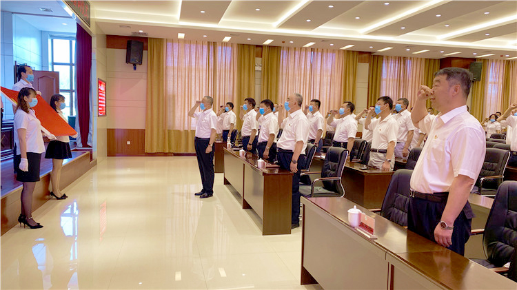 6月30日,金河林業局森林經營處組織開展“重溫誓詞”紅色教育活動,教育引導黨員干部堅守初心使命、勇于擔當作為,積極發揮先鋒模范作用。(韓淑芬 攝)
