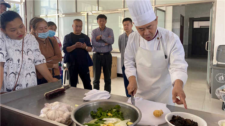 此次培訓,采取現場指導教學、實踐操作相結合的授課方式,就食材的挑選、搭配、刀工、調味、烹飪手法等烹飪知識展開培訓。培訓老師手把手指導,學員們認真的看、聽、記,還不時的提一些烹飪中遇到的問題。培訓現場鮮香四溢,鍋鏟碰撞的“叮叮當當”聲和歡笑聲連成一片。課后烹飪老師還將菜譜用料、制作方法上傳至“烹飪微信群”,確保每位學員都能掌握所學技能。(秦芹)