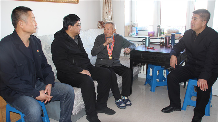 活動(dòng)中,慰問組一行先后來到陶有善、涂光清、賈華濤、于德水老人家中,慰問5位抗美援朝志愿軍老兵,與老人們共同回顧了抗美援朝戰(zhàn)爭的艱苦歲月,仔細(xì)詢問了老人及家人的身體情況,感謝他們?yōu)閲易龀龅呢暙I(xiàn),并送上了“中國人民志愿軍抗美援朝出國作戰(zhàn)70周年”紀(jì)念章榮譽(yù)勛章和慰問品。(圖雅 攝)