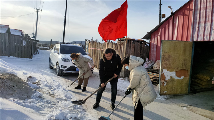 活動中,志愿者們來到陳大爺家,老兩口因為身體不好,無法干重體力活,導致院內大量積雪無人清理。雖春寒料峭,但志愿者們熱情高漲,干勁十足。大家手拿鐵鍬、掃帚、推雪板等工具僅僅1個小時,院內冰凍積雪就被清理的干干凈凈。(圖雅 李穎 攝)