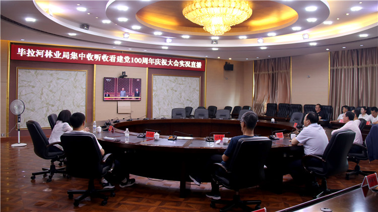 畢拉河林業局廣大黨員干部群眾通過電視、網絡等形式收聽收看建黨100周年慶祝大會直播實況。(羅碧長)