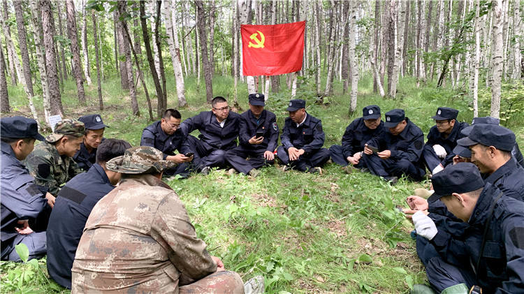 大楊樹林業局森林調查設計隊在工作一線收看慶祝中國共產黨成立100周年大會直播。
