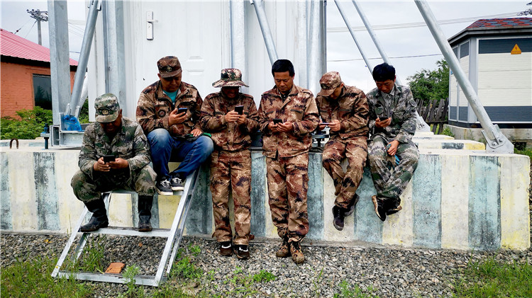 根河森工公司機關干部職工通過手機收看慶祝中國共產黨成立100周年大會直播。