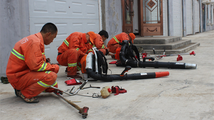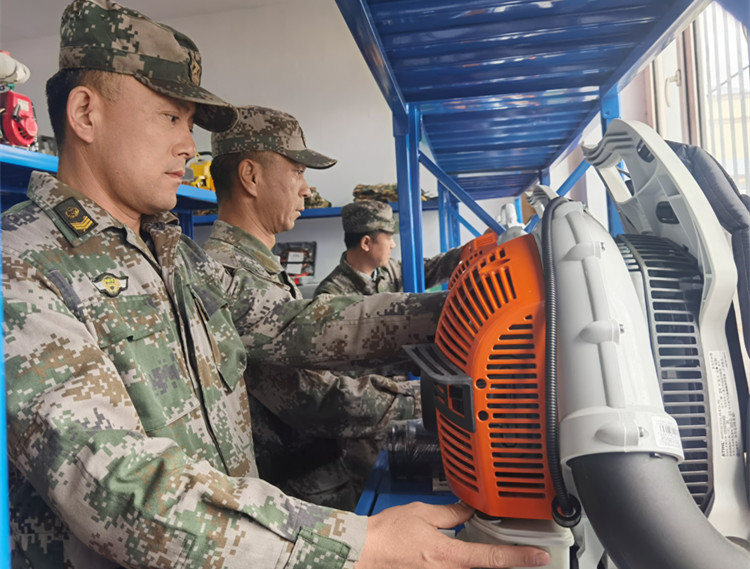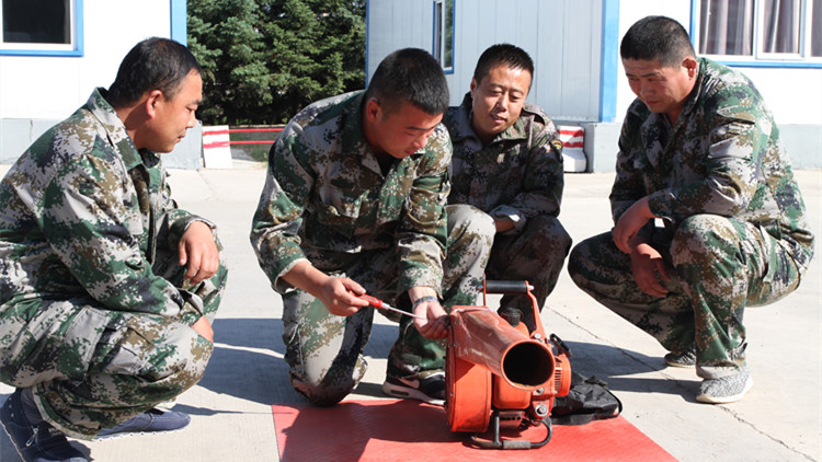 9月15日,金河森工公司組織滅火隊員對運兵車輛、風力滅火機、割灌機等機具進行檢修,排查故障,做到設備完好率100%。(劉宏偉 張旭 攝)