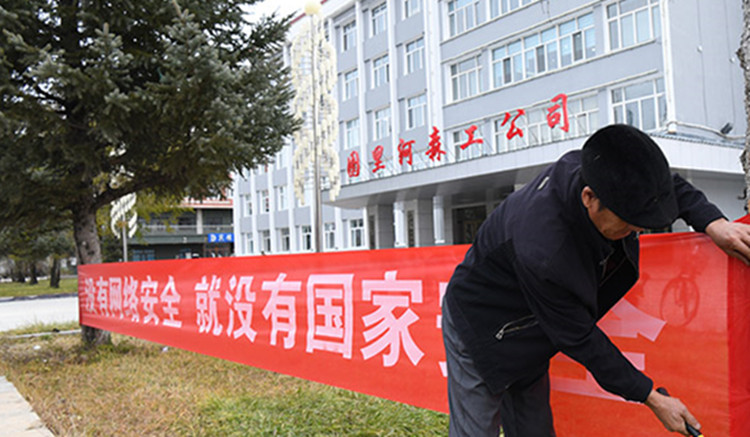 10月13日,根河森工公司組織人員在醒目位置懸掛網(wǎng)絡(luò)安全宣傳標(biāo)語(yǔ),為網(wǎng)絡(luò)安全宣傳周營(yíng)造良好宣傳氛圍。(張景馨 王宇)
