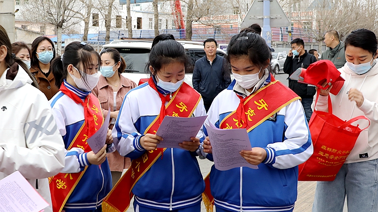 活動中,森工集團黨委宣傳部黨支部、林業信息中心黨總支黨員及牙克石市第四小學志愿者向學生家長及學生發放宣傳單,宣講黨的路線、方針、政策和民族團結進步政策以及相關法律法規。
