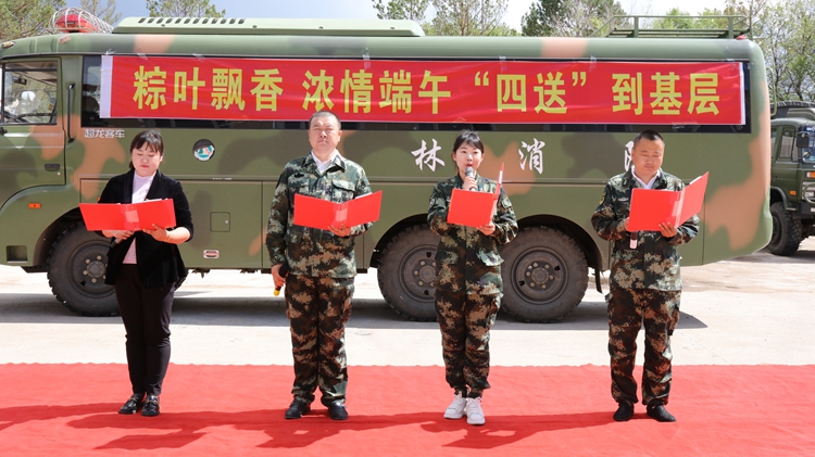近日,大楊樹林業有限公司黨委開展“四送”到基層活動,為堅守在防火一線的干部職工及森林消防隊員送服務、送知識、送溫暖、送文藝,共度端午佳節。(李志鳳 趙鎮)