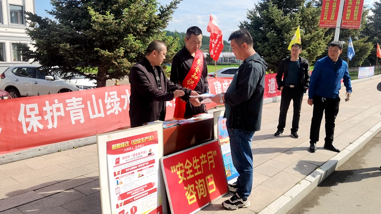 6月16日是全國安全生產宣傳咨詢日。當天,滿歸森工公司聯合滿歸鎮政府、供電所、派出所,開展以“遵守安全生產法 當好第一責任人”為主題的安全生產咨詢日宣傳教育系列活動。(趙剛)
