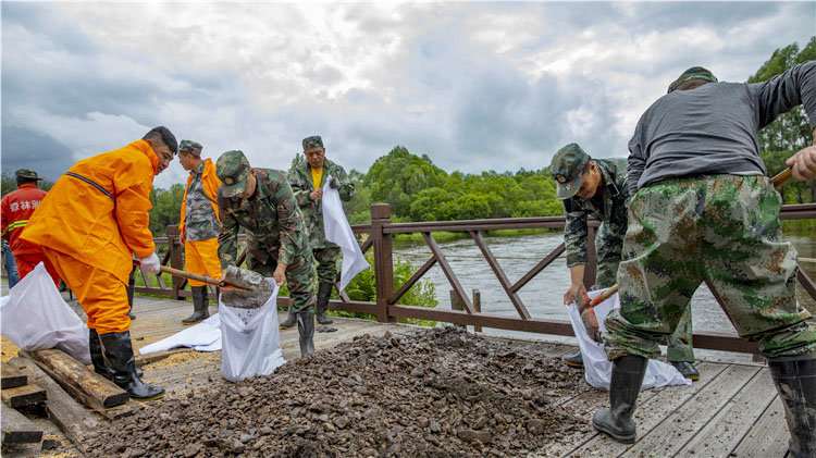 發現險情后,經圖里河森工公司領導班子綜合分析研判,因天色已黑立即搶險存在安全隱患,決定于13日上午由應急事務處和濕地公園管理局開展抗洪搶險工作。本次抗洪搶險用時1天,出動抗洪搶險人員25人、重型機械設備1臺,使用沙袋和板方完成了棧道護坡塌陷處緊急填補維修工作。為工作人員及游客及時排出安全隱患。(張曉東、高小軍)