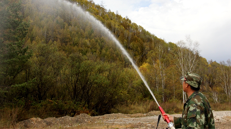 莫爾道嘎森工公司應急事務處以水滅火中隊開展以水滅火應急演練,確保秋防無戰事。(杜鳳明 王長江)
