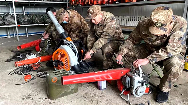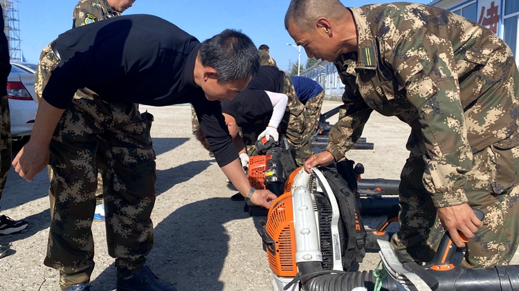 根河森工公司整理清點防火物資,對防火車輛、機具、通信設備進行檢修保養,確保防滅火裝備設施狀態完好。(王宇)