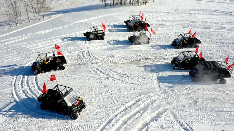 活動現(xiàn)場雪地摩托在一望無際的雪原上極速行駛,不時從雪坡一躍而起,引來一陣陣歡呼。許多游客也禁不住誘惑,坐上雪地摩托在雪原上兜上一圈,體驗冰雪運動的樂趣。