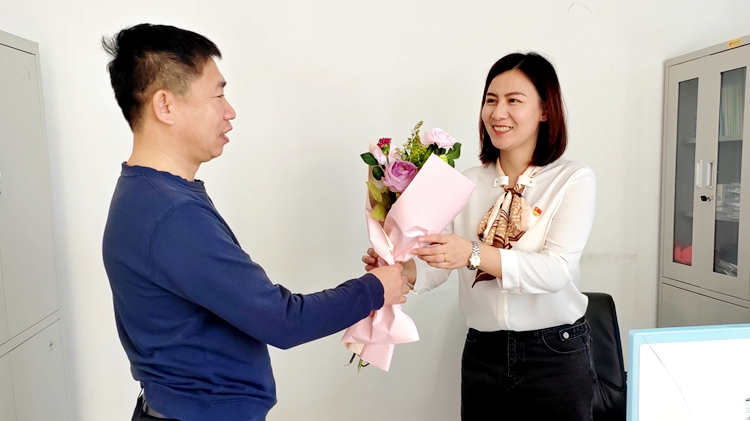 3月6日,圖里河國家濕地公園管理局為女職工送上鮮花,慶祝“三八”國際婦女節(jié)。(劉靜)