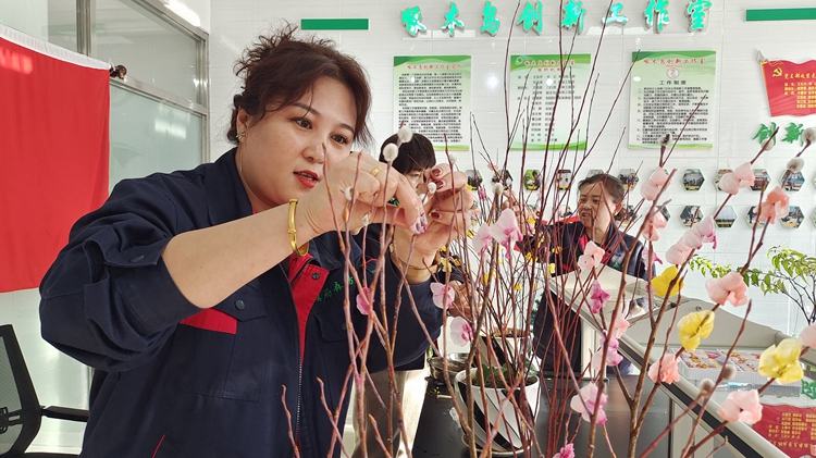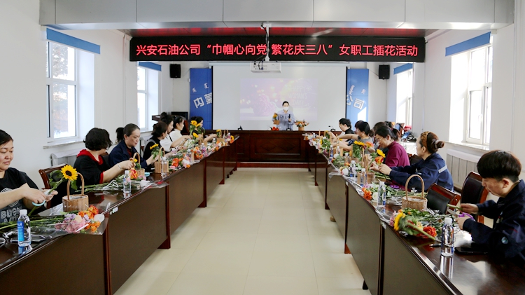 3月7日,興安石油公司開展“巾幗心向黨 繁花慶三八”插花活動。(高彬)