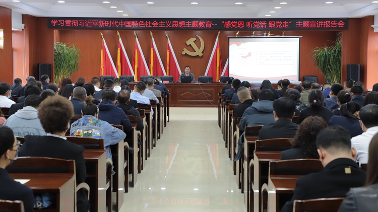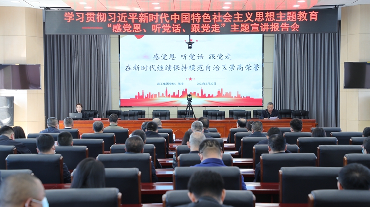 5月25日,森工集團(tuán)黨委學(xué)習(xí)貫徹習(xí)近平新時(shí)代中國特色社會(huì)主義思想主題教育——“感黨恩、聽黨話、跟黨走”主題宣講報(bào)告會(huì)在烏爾旗漢森工公司開講。(程光復(fù))