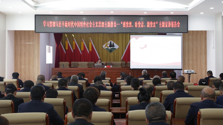 5月25日,森工集團(tuán)黨委學(xué)習(xí)貫徹習(xí)近平新時(shí)代中國特色社會(huì)主義思想主題教育——“感黨恩、聽黨話、跟黨走”主題宣講報(bào)告會(huì)在根河森工公司開講。(魯楠楠)