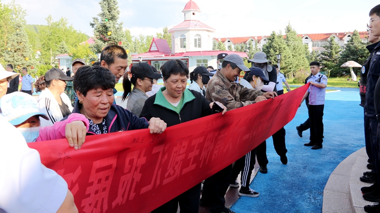 6月20日,莫爾道嘎森工公司與莫爾道嘎鎮(zhèn)政府、呼倫貝爾邊境管理支隊(duì)紅色邊關(guān)文藝隊(duì)聯(lián)合舉辦學(xué)習(xí)貫徹黨的二十大精神主題文藝匯演。用職工群眾喜聞樂(lè)見(jiàn)的形式推動(dòng)黨的二十大精神深入人心。呼倫貝爾邊境管理支隊(duì)的民警向現(xiàn)場(chǎng)觀眾發(fā)放了《中華人民共和國(guó)陸地國(guó)界法》宣傳手冊(cè),現(xiàn)場(chǎng)觀眾在宣傳條幅上簽上自己名字的同時(shí)也留下了對(duì)偉大祖國(guó)的美好祝愿。(孫楠楠)